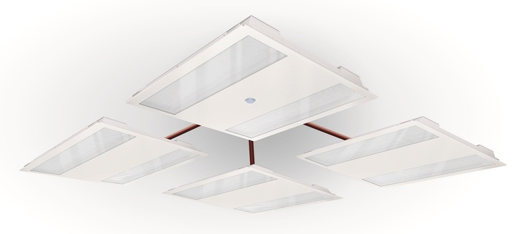 Esylux, 11.1-D32: Die Nova-Quadro-Sets kombinieren jeweils vier Master- und Slaveleuchten. Diese realisieren mit der integrierten Präsenz- und Lichtsensorik und einem Lichtmanagement entweder eine klassische präsenz- und tageslichtabhängige Konstantlichtregelung – oder sie erzeugen das biologisch wirksame Licht der SymbiLogic-Technology des Herstellers. www.esylux.de