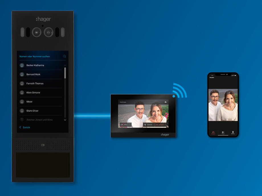 Das Hager intercom Portfolio bietet bei den Innenstationen mit der intercom speak eine klassische Audio-Innenstation, wahlweise mit Hörer oder freisprechend, sowie eine Video-Innenstation – intercom view – mit Touchdisplay. Auch die Außenstationen intercom mono, intercom modular und intercom motion lassen je nach Hausgröße, Kommunikations- und Zutrittsanforderungen keine Wünsche offen. Die kostenlose Hager intercom App ermöglicht zudem die ortsunabhängige Türkommunikation über das Smartphone. Das Besondere: Durch den modularen Aufbau können die Komponenten beliebig miteinander kombiniert, die Systeme somit passgenau geplant und später bei Bedarf erweitert werden. Damit bleiben Installationen langfristig zukunftssicher.