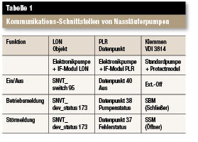 Wilo bietet mit den neuen TOP-S Protectmodulen (Bild 2) nun die Möglichkeit, Standard-Nassläuferpumpen intelligent in eine Gebäudeautomation gemäß Klemmen nach VDI 3814 einzubinden. Tabelle 1 stellt beispielhaft die für wichtige Steuer- und Meldefunktionen erforderlichen Bus-Datenpunkte den Klemmenfunktionen nach VDI 3814 gegenüber.