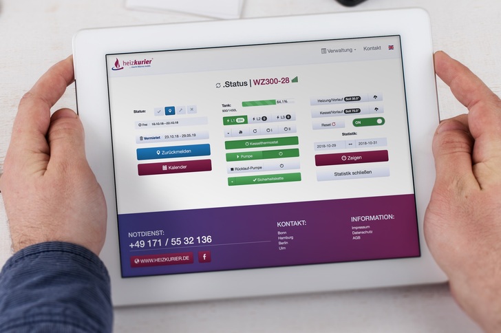 heizkurier, 11.0 G72 / 4.2 B34: Die interaktive Online-Regelung ermöglicht es heizkurier-Kunden, ortsunabhängig und in Echtzeit die Betriebsdaten der eingesetzten Anlagen zu überwachen und deren Leistungen aktiv ferngesteuert zu regulieren. www.heizkurier.de