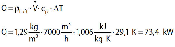 Um das Raumvolumen der Produktionshalle zu beheizen, werden ölbefeuerte Warmlufterzeuger im Außenbereich aufgestellt, die erwärmte Luft wird über Warmluftschläuche in das Gebäude transportiert. Für das Berechnungsbeispiel werden folgende Annahmen getroffen: