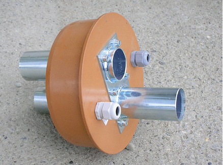 Der unterirdische Behälter ThermoPel der Baugenossenschaft Familienheim Lörrach fasst 45 m 3 , das entspricht knapp 30 t Füllgewicht bzw. dem Heizwert von 15 000 l Heizöl. Er hat drei runde Öffnungen mit Stutzen, über die befüllt wird Abb. 2. So entstehen drei nebeneinander liegende Schüttkegel mit einem Minimum an Hohlraum. Vorab wird vom Lkw-Fahrer die rechteckige Einstiegsluke geöffnet, das Austragsystem Maulwurf nach oben gezogen und dort während des Einblasens fixiert. Die Speichergröße in Lörrach erlaubt bei entsprechender Bestellung kostengünstig ein Silofahrzeug, je nach Typ mit 18 bis 24 t, komplett zu entleeren.