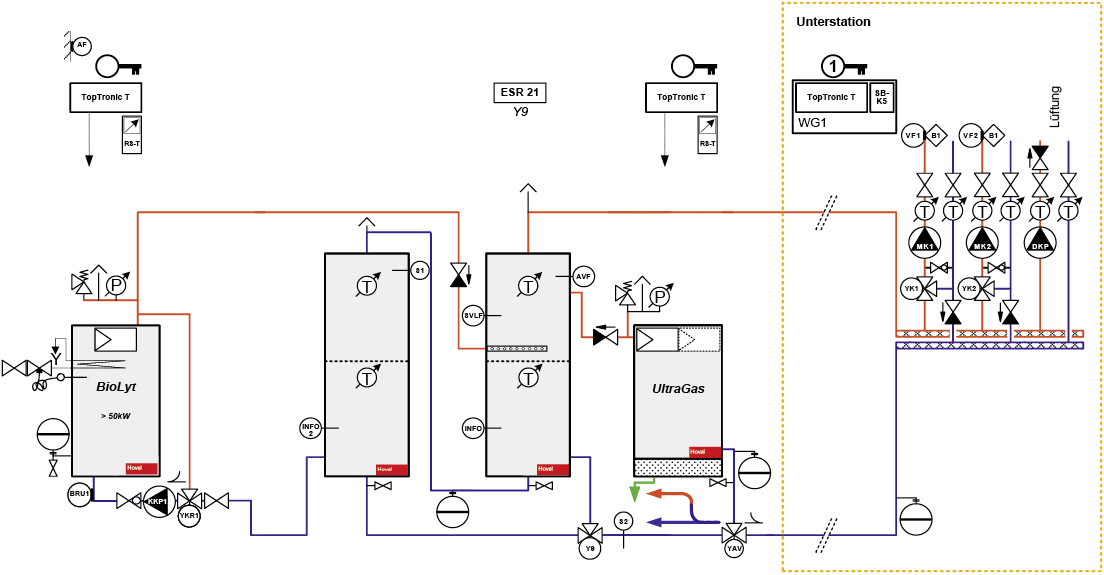 - im Kessel integrierte Hoval TopTronicT-Regelung mit Kaskadenmanagement als Ersatz für das defekte Gebäudeautomationssystem, dessen Neuanschaffung über 10 000 Euro gekostet hätte
