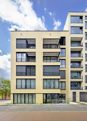 Moderne Architektur mit Loftcharakter, große Panoramafenster und Backsteinfassaden setzen die Gebäude in Bezug zu ihrer grünen Umgebung. Sie wurden von Niber Realty in Zusammenarbeit mit den Berliner Architekten Kuhn & Co. entwickelt und projektiert. Eines der exklusiven Wohn- und Gewerbeobjekte ist die Bernauer Straße 49 Abb. 1. Es entstanden zwölf exklusive Eigentumswohnungen, davon zwei Penthouse-Wohnungen mit großzügiger Dachterrasse sowie zwei Gewerbeeinheiten im Erdgeschoss.