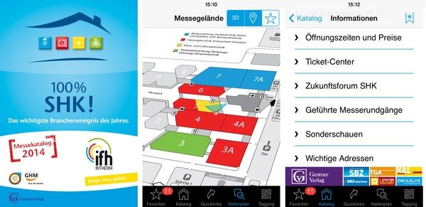 Bestens dazu geeignet ist die kostenlose App IFH/Intherm. Durch den integrierten offiziellen Messekatalog mit allen Ausstellern, Warengruppenverzeichnissen und Hallenplänen sowie zahlreichen Zusatzfunktionen vereinfacht sie die Vorbereitung, Durchführung und Nachbereitung der Messe. Die IFH/Intherm-App ist lauffähig auf iPhone, iPad und iPod touch ab iOS 5.0 ( Download über iTunes ) sowie auf allen Geräten mit Android ab Version 2.2 ( Download über Google Play ).