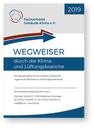 Der Fachverband Gebäude-Klima (FGK) hat seinen „Wegweiser durch die Klima- und Lüftungsbranche“ neu aufgelegt. Architekten, Planer, Ingenieure, Bauherren und Anlagenbetreiber finden darin die im Verband organisierten Unternehmen, die für ihre jeweiligen Belange relevant sind. Der Wegweiser dient als Orientierungshilfe und ist nach folgenden Rubriken gegliedert: alphabetisches Mitgliederverzeichnis, Produktgruppen, Fachgroßhandel und nach Postleitzahl geordnete Objektbereiche. In weiteren Bereichen sind Planende Ingenieure, Reinigungsdienstleister für RLT-Anlagen, Sachverständige, Wissenschaftliche Institute, Aus- und Weiterbildungsstätten, Verbände, Verlage, Fördermitglieder und die Arbeitsgruppen des FGK aufgeführt. Der Wegweiser steht über den Menüpunkt „Literatur + Shop“ als PDF-Dokument zur Verfügung: www.fgk.de