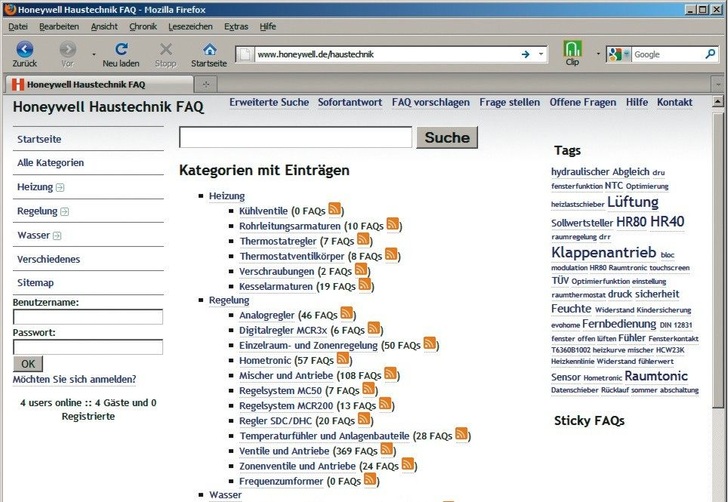 „Kann ein HR80 von einem HCM82 angefunkt werden?“ – „Bis zu welchem Zulaufdruck kann das Wasserbehandlungsgerät KS10S betrieben werden?“ – „Kann man den Ventileinsatz am Thermostatventil V100 auch während des Heizbetriebs wechseln?“. Das fragen sich jeden Tag viele Sanitär- und Heizungsfachleute. Antworten auf die gängigsten Fragen rund um die Produkte und Lösungen von Honeywell erhalten sie in der überarbeiteten FAQ-Datenbank. Die Datenbank umfasst momentan über 850 Einträge in den Kategorien „Heizung“, „Regelung“, „Wasser“ und „Verschiedenes“. Unter „FAQ vorschlagen“ können die Nutzer eine potenzielle Frage nebst Antwort eingeben. http://www.honeywell.de/haustechnik