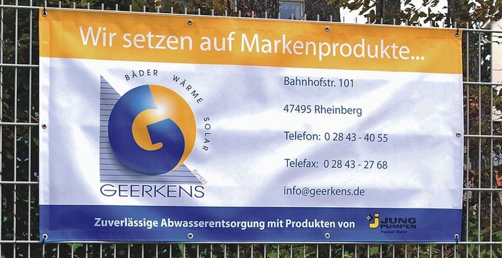 Mit einem neuen Service von Jung Pumpen können Partner aus dem Fachhandwerk sich jetzt ihr individuelles Bauschild schnell und kostengünstig anfertigen lassen. Für 34,90 Euro (inkl. Versand, zzgl. MwSt.) ist ein fertig gestaltetes Bauschild erhältlich. Die Bestellung erfolgt online: Auf der Internetseite von Jung Pumpen in der Rubrik Service/Marketingservice/Bauschilder findet sich ein Bestellformular, mit dem ein druckfähiges Firmenlogo einfach hochgeladen wird. Nach Freigabe des Layouts wird das fertige Schild innerhalb von vier Werktagen geliefert. Bei einer Bestellung ab drei Schildern wird der Preis günstiger. https://www.jung-pumpen.de/