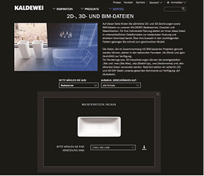 Im November 2016 hat Kaldewei BIM-Daten zum Download auf seiner Internetseite in der Rubrik Service veröffentlicht. Die Daten stehen in den Formaten rfa (Revit) und gsm (ArchiCAD) sowie 3D-Daten in den Formaten 3ds und max (3ds Max), skp (Sketch’up), vwx (Vectorworks), dxf (Autodesk) und alto (Atlantis) zur Verfügung. Modelliert ist jeweils das Basisprodukt mit den obligatorischen Sichtteilen wie Ab- und Überlauf. www.kaldewei.de