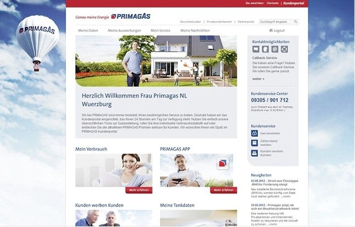 Der Flüssiggasversorger Primagas bietet Kunden mit Comfort-Verträgen seit August 2012 ein passwortgeschütztes Kundenportal mit nützlichen Funktionen. Im Bereich „Meine Daten“ können Kunden beispielsweise die Rechnungs- oder Lieferanschrift ändern, den Füllstand des eigenen Tanks kontrollieren, Gas bestellen oder den Termin der nächsten Behälterprüfung sehen. „Meine Auswertungen“ bietet eine Verbrauchsstatistik, als Monats- oder Jahresübersicht. Über „Mein Service“ können Kunden Zählerstände übermitteln, Bewertungen abgeben oder an Online-Aktionen teilnehmen. Perspektivisch sollen die Funktionen ausgebaut und der Nutzerkreis erweitert werden. https://www.primagas.de/