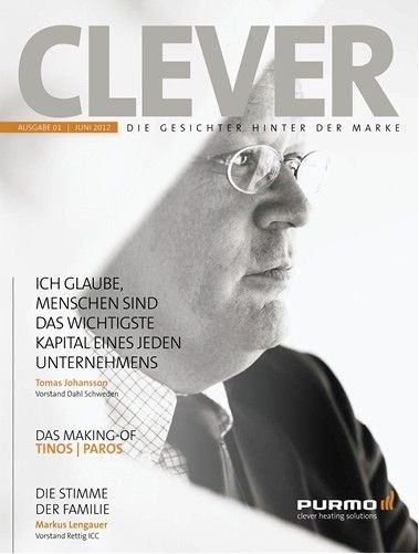 „Clever“ heißt die neue Kundenzeitschrift der Marke Purmo, die ab 2012 einmal jährlich erscheint. Das Magazin im Stil einer Publikumszeitschrift thematisiert die weichen Faktoren rund um Purmo und das Unternehmen Rettig ICC. Reportagen und Interviews stellen die Führungskräfte des Unternehmens, aber auch Lieferanten und Kunden vor. Der Leser erhält so aus unterschiedlichsten Perspektiven Einblick in internationale Märkte der Heizungsbranche. Zahlen und Fakten stehen dabei weniger im Fokus als vielmehr die menschliche Sichtweise auf Märkte, Unternehmen und Produkte. Darauf verweist auch der Untertitel der Publikation „Die Gesichter hinter der Marke“. Das kostenlose Magazin kann über info@purmo.de bestellt werden. http://www.purmo.de