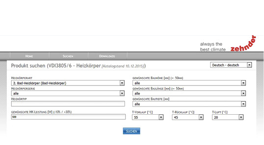 Über den VDI-3805-Webnavigator ( www.vdi3805-portal.de ) des Bundesverbands der Deutschen Heizungsindustrie (BDH) bietet Zehnder für seine Heizkörpermodelle jetzt BIM-Produktdaten an. In der Eingabemaske des VDI-3805-Webnavigators wird das Heizkörper-Modell sowie die gewünschte Wärmeleistung, Baugröße, Anschlussart, Oberfläche und Systemtemperatur ausgewählt. Die Heizkörper-Geometrien können anschließend in 2D oder 3D inklusive technischer Attribute, wie Anschlusspositionen und Leistungsdaten, exportiert und weiterverarbeitet werden. www.zehnder-systems.de