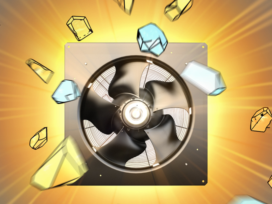 Eine große Stärke der AxiEco Baureihe zeigt sich zum Beispiel bei Verdampferanwendungen, wenn sich die Luftfeuchtigkeit bei kalten Umgebungstemperaturen am Wärmetauscher als Eis niederschlägt. Dadurch verengen sich die Luftwege und der zu überwindende Druck nimmt zu. Hier bieten AxiEco Ventilatoren deutlich mehr Druckreserven. Die Intervalle zwischen den Abtauzyklen verlängern sich und Kälteanlagen können länger effizient betrieben werden.