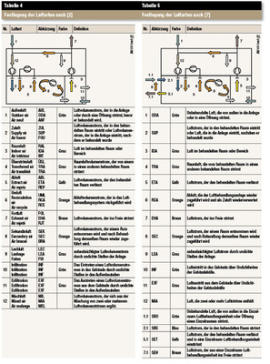 Im 2005 erschienenen Entwurf von DIN EN 13779 [2] – Ersatz für DIN 1946-2 – wurden neben der neuen Definition der Luftströme (auch in englisch und französisch) die Grundarten der Anlagen wiederum neu definiert (Tabelle 4 und Tabelle 5). Die im September 2007 herausgegebene Fassung von DIN EN 13799 [7] erwartet nun aber bereits vom Anwender, dass er die englischsprachigen Abkürzungen der Luftvolumenströme schon verinnerlicht hat. Wie die Gegenüberstellung in Tabelle 6 verdeutlicht, gibt es nur noch die Dreibuchstaben-Abkürzungen aus den englischen Bezeichnungen. Die Einführung der Bezeichnungen für die Einzelraumgeräte ist vermutlich eine Erweiterung um die bekannte Darstellung nach Bild 1 bzw. Tabelle 1. Die Interpretation der englischen Abkürzung ist für den Normenanwender nur durch Raten, Drittquellen oder den Kauf einer englischen Ausgabe von [7] möglich. Weiterhin sind die Klassifikationen nach den thermodynamischen Luftbehandlungen entfallen, die jetzt ersatzweise als „Aufgaben der Lüftungs- und Klimaanlagen und Anlagentypen“ (Abschnitt 6.3 in der Norm) beschrieben werden: