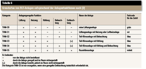 sowie eine Zuordnung der Anlagen nach der Art der Regelung des Umgebungsklimas in einem Raum. Danach erfolgt bei „Nur Luftanlagen“ die Regelung durch die Lüftungsanlage allein. Bei „Kombinierten Systemen“ erfolgt sie durch die Lüftungsanlage in Verbindung mit anderen Einrichtungen; als Beispiele werden „Heizvorrichtung“, „Kühldecken“ und „Radiatoren“ angegeben.