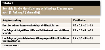 So kann danach eine Klimaanlage, wie in Tabelle 8 dargestellt, beschrieben werden. Andererseits fokussiert sich die Norm aber vorrangig auf Kühlsysteme und nimmt folgende Unterteilung vor: