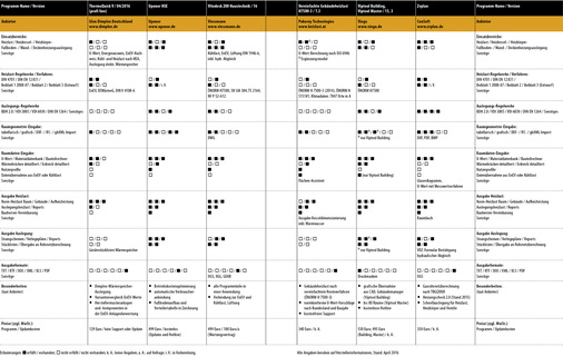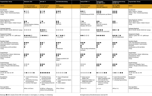 Etwa 30 Anbieter offerieren Heizlast-Berechnungsprogramme (siehe Tabelle und Infokasten). Die meisten Berechnungsprogramme sind Teil umfangreicher Lösungen zur energetischen und / oder haustechnischen Berechnung oder in CAD-Programme integriert. Letzteres hat den Vorteil, dass Gebäude- und Bauteildaten per Schnittstelle in die Heizlastberechnung übernommen werden.
