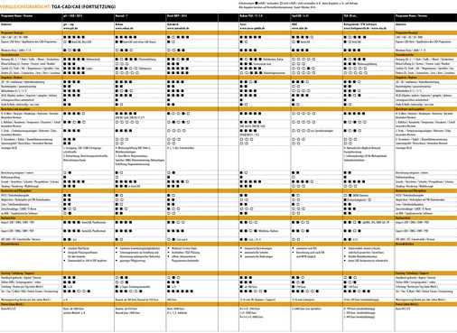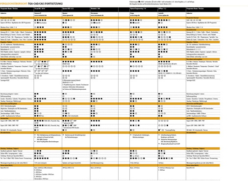 - Diese Marktübersicht vergleicht aktuelle TGA-spezifische CAD- und CAE-Lösungen in wichtigen Punkten tabellarisch und bietet dadurch eine erste Hilfe bei der Produktauswahl.