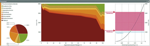 Ermittelt werden der Gesamtdruckverlust, der maximale Einzeldruckverlust, Daten für Druckminderer und Druckerhöhungsanlagen, die ungünstigsten Stränge für Kalt- und Warmwasser etc. Ferner werden alle notwendigen Durchflüsse der Zirkulationsleitungen, der Temperaturverlauf, die Einstellung der Zirkulationsventile berechnet und die 3-Liter-Regel gemäß DGWV W 551 überprüft. Hilfreich ist, wenn erkannte Problemstellen direkt in der Zeichnung angezeigt werden.
