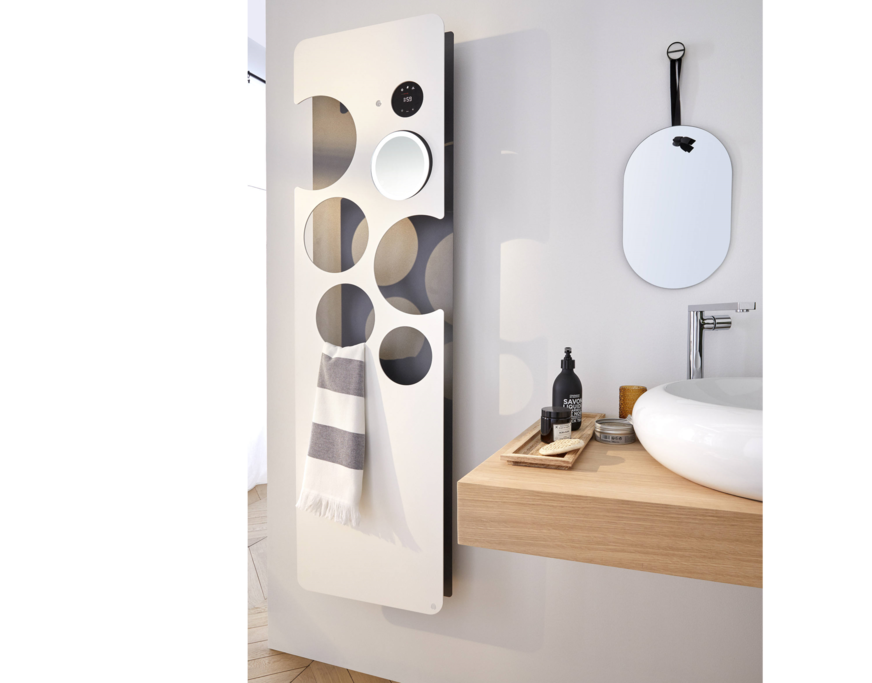 Glen Dimplex Heating Ventilation, 12.0-E71: Der elektrische Badheizkörper TRP 150 X bietet durch die Kombination von Infrarotstrahlung und einem Turboheizgebläse 1,5 kW Heizleistung. Das Design bietet die Möglichkeit, bis zu fünf Handtücher aufzubewahren und ohne Überlappung zu trocknen. Weitere Details sind ein beleuchteter schwenkbarer Schminkspiegel und eine digitalen Zeitanzeige.