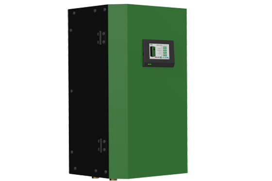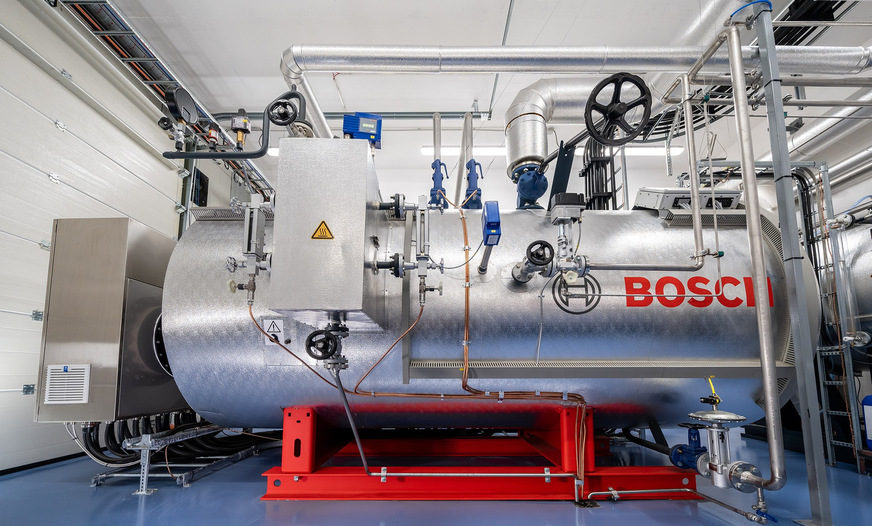 Bosch Industriekessel, 12.0-C80: Der Elektrodampfkessel ELSB (Electric Steam Boiler) deckt mit 300 bis 7500 kg/h bei bis zu 24 bar Dampfprozesse mit Temperaturen bis 224 °C ab. Laut Anbieter wächst aufgrund des zunehmenden Ausbaus erneuerbarer Energien und der damit verbundenen Überschüsse die Nachfrage nach Elektrodampfkesseln rasant.