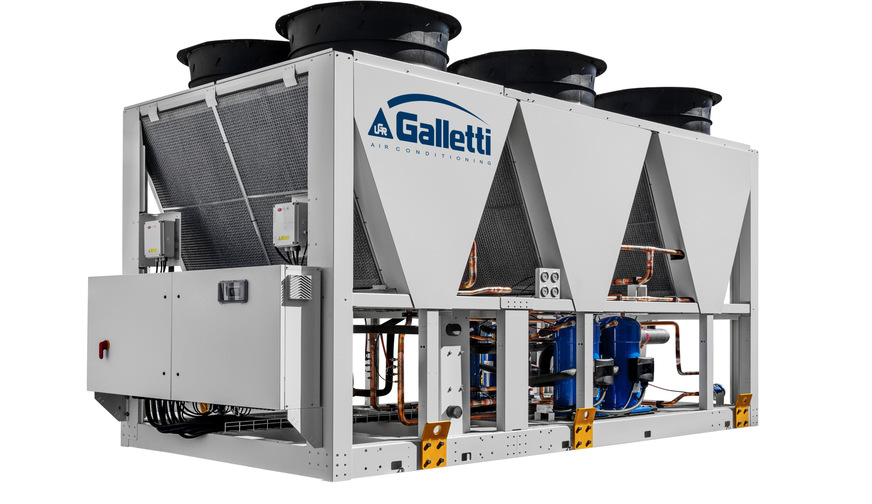 Kaut-Gruppe, 12.1-B41: Die reversierbaren Wärmepumpen und Kaltwassersätze der VLS-Serie von Galletti verwenden das A2L-Kältemittel R454B (GWP 467) und zeichnen sich durch ihre hohe Energieeffizienz und spezifische Leistung sowie eine Vielzahl an Konfigurationsmöglichkeiten aus. Die Serie besteht aus 13 Modellen mit einer Kälteleistung von 150 bis 590 kW und erreicht Wassertemperaturen von − 10 bis 57 °C.