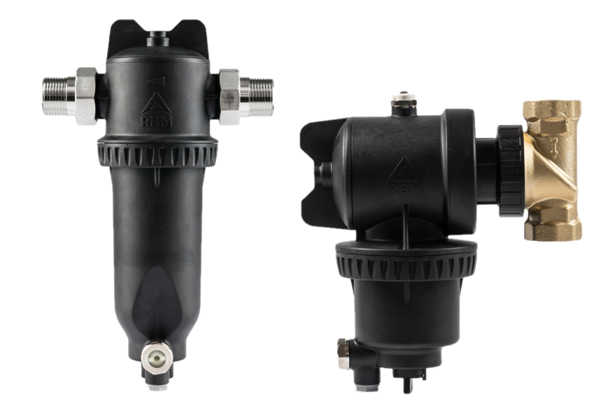 RBM, 9.1-E60: Die neuen kompakten Magnetit- und Schlammabscheider „MP1“ und „MP2 sind auf die hydraulischen Anlagenverhältnisse von Wärmepumpen und Holzheizungen abgestimmt. Sie zeichnen sich durch einen geringen Druckverlust, eine hohe Leistung bei großem Durchflussbereich, einen großen Auffangbehälter, einen extrem starken Neodym-Magnet sowie ein feinmaschiges Filternetz aus.