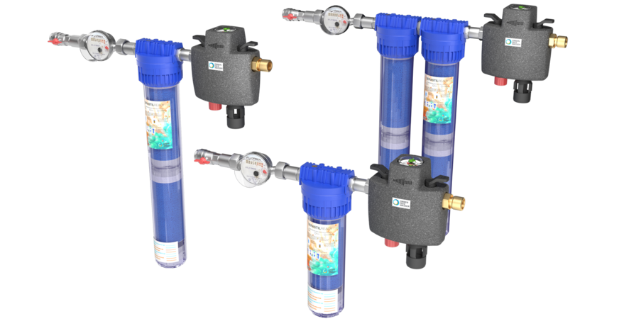 Orben, 9.0-D17: Die Serastil-Kartuschen-Systeme zur normgerechten Heizwassernachspeisung sind in verschiedenen Größen mit und ohne Systemtrenner (Füllkombi) erhältlich. Sie eignen sich für kleine bis mittelgroße Anlagen in Ein- und Mehrfamilienhäusern und sind für einen Eingangsdruck bis 8 bar ausgelegt. Erschöpftes Harz wird durch einen Farbwechsel von blau zu braun angezeigt.