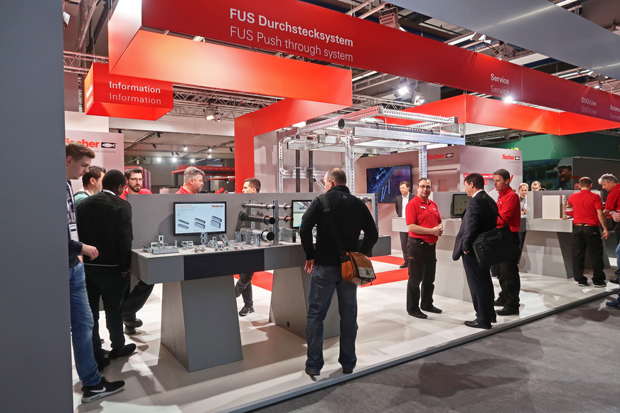 Fischer, 6.1-B49: zeigt erstmals in größerem Rahmen das selbst entwickelte Sortiment an Festpunkten und Gleitelementen für alle Lastniveaus zur Aufnahme von thermisch bedingten Ausdehnungen von Rohren. Eine weitere Neuheit ist die Systemlösung zur sicheren Umsetzung verschiedener Flachdachinstallationen sowie die Befestigungen FBA II 6 für Rohrleitungen, Kabeltrassen und Montageschienensysteme.