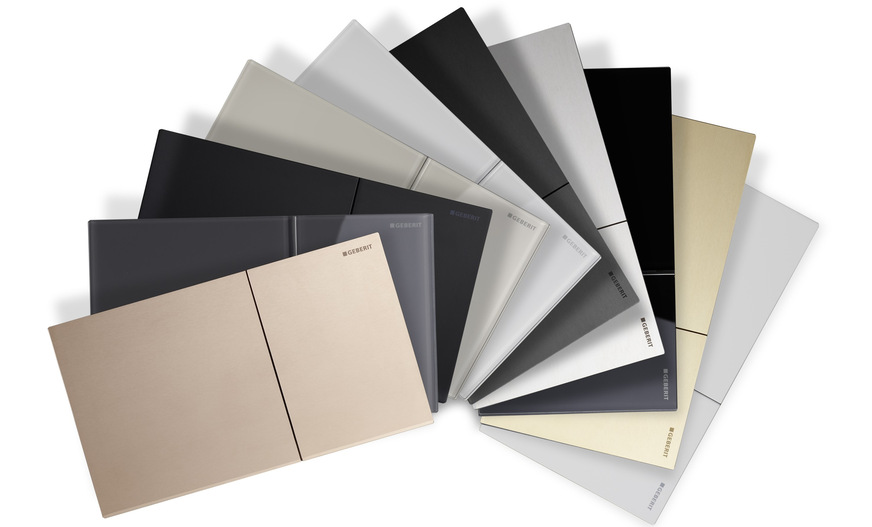 Geberit, 4.0-B06: Die Betätigungsplatte Sigma70 zeichnet sich durch ihre leicht konvexe Form aus, die ihr ein schwebendes Erscheinungsbild verleiht. Bislang gab es die Betätigungsplatte in gebürstetem Edelstahl und in weißem bzw. in sandfarbenem Glas sowie in Schwarz und Lava. Um künftig noch besser den Wünschen der Nutzer zu entsprechen, ist die Edelstahlversion jetzt auch lackiert in Mattschwarz erhältlich. Außerdem gibt es neue PVD-Varianten in den Farben Rotgold, Schwarzchrom und Messing.