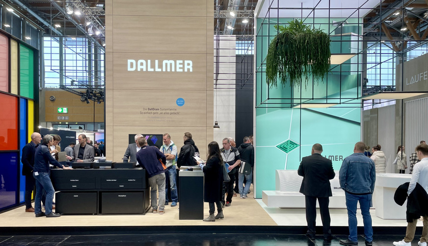 Dallmer, 4.0-C06, hat für den Trend möglichst fugenloser Oberflächen im Duschbereich eine Duschrinne speziell für die Anforderungen dünnschichtiger Spachtelsysteme entwickelt. Neu und ziemlich exklusiv ist außerdem die schwarze Edelstahl-Duschrinne CeraFloor Select Duo, die mit Längen bis zu 2 m hergestellt werden kann.