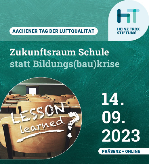 Der diesjährige „Aachener Tag der Luftqualität“, der am Donnerstag, 14. September, von 10 bis 17 Uhr von der Heinz Trox-Stiftung in Aachen ausgerichtet wird, nimmt das Thema Bildungsgebäude und deren Innenraumqualität, wie Licht, Luft und Aktustik in den Fokus. Forschende, Praktikerinnen und Praktiker, Verantwortliche und Betroffene berichten zu Erkenntnissen der vergangenen Jahre und zeigen mögliche Handlungsoptionen auf. Die Teilnahme ist kostenfrei.