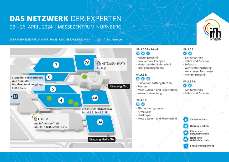 ✅ Und in Halle 7A befindet sich Sanitärtechnik, Rohre und Zubehör. Obendrein bietet hier das neue IFH/Intherm Innovations-Podium Kurzvorträge zu neuen Produkten und Lösungen.