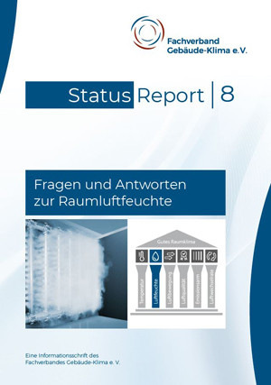 Der Fachverband Gebäude-Klima e. V. (FGK) hat den Status-Report 8 „Fragen und Antworten zur Raumluftfeuchte“ aktualisiert. Die Veröffentlichung informiert über die Bedeutung der Raumluftfeuchte für die Gesundheit sowie über Möglichkeiten für direkte und indirekte Luftbefeuchtung. Anwendungsbeispiele veranschaulichen den Einsatz unterschiedlicher technischer Lösungen in der Praxis. Die Veröffentlichung steht zum Download auf der Website des FGK im Menüpunkt „Dokumente/Literatur“. Gedruckte Exemplare sind auch auf der ISH − Weltleitmesse für Wasser, Wärme, Luft − in Frankfurt am Main vom 13. bis 17. März 2023 am Gemeinschaftsstand der European Ventilation Industry Association (EVIA), des FGK und des Herstellerverbandes RLT-Geräte e. V. in Halle 8.0, Stand A 35 oder auf Anfrage bei der Geschäftsstelle des FGK erhältlich.