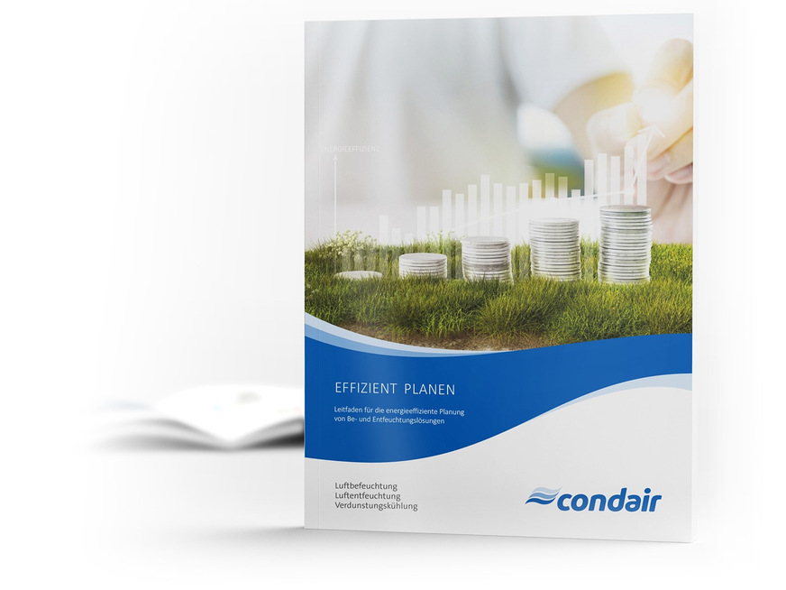 In der Broschüre „Effizient planen – Leitfaden für die energieeffiziente Planung von Be- und Entfeuchtung“ erläutert Condair detailliert den wirtschaftlichen und energetischen Nutzen der adiabatischen Verdunstungskühlung unter klugem Einsatz von Ressourcen wie Regenwasser und Abwärme. Zudem wird die Simulation von Einsparpotenzialen durch die Software „myCoolBlue“ beschrieben – damit zeigt sich schon während der Planung, welcher Effizienzgewinn im konkreten Projekt möglich ist.