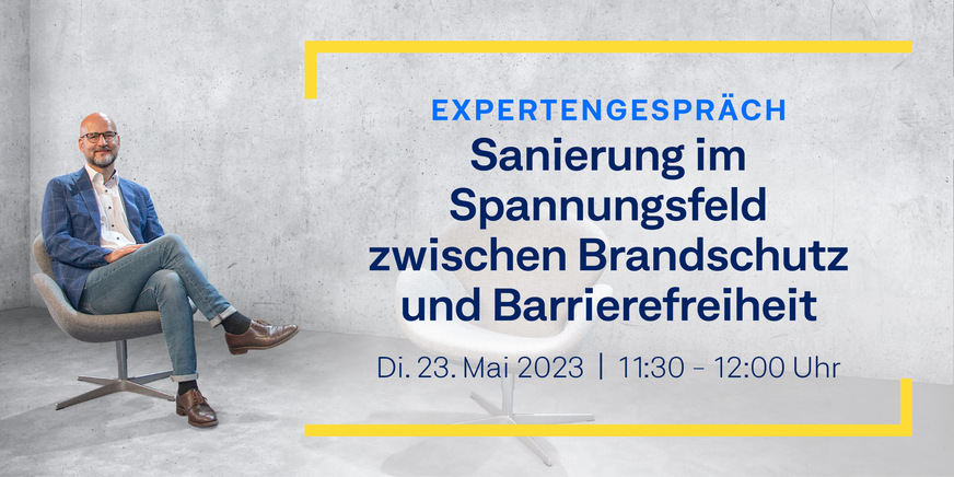 Wie können die oft gegenläufigen Anforderungen von Barrierefreiheit und Brandschutz bei der nachhaltigen Sanierung von Gebäuden berücksichtigt werden? Darüber diskutieren eine Architektin und ein Sachverständiger für Brandschutz am 23. Mai von 11:30 Uhr bis 12:00 Uhr digital und live aus dem Geze-Studio in Leonberg.