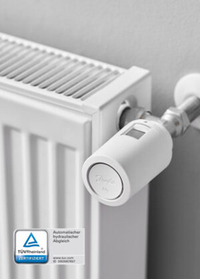 Dasselbe gilt unverändert für den automatischen hydraulischen Abgleich mithilfe der Smart-Heating-Lösungen Danfoss Icon 24V OTA (für Fußbodenheizungen) und Danfoss Eco (für Heizkörperanlagen), der vom TÜV-Rheinland als ebenfalls gleichwertig mit einem Abgleich mit berechnungsbasierten manuellen Voreinstellungen zertifiziert wurde.