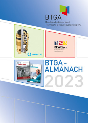 Der Bundesindustrieverband Technische Gebäudeausrüstung (BTGA) hat die 23. Ausgabe seines Almanachs veröffentlich. Das Jahrbuch verdeutlicht u. a. die Schlüsselposition der TGA-Branche für das Ausschöpfen von Energieeinsparpotenzialen – insbesondere für den Bereich Nichtwohngebäude. In dem Jahrbuch werden gebäudetechnische Energie- und Effizienzlösungen installierender Unternehmen vorgestellt, beispielsweise für die Gebäudeautomation, die Gebäudeklimatisierung und -lüftung und für die Trinkwasserversorgung. Der BTGA-Almanach kann kostenfrei über info@btga.de bestellt werden. Außerdem steht die Publikation als E-Paper zur Verfügung. ■