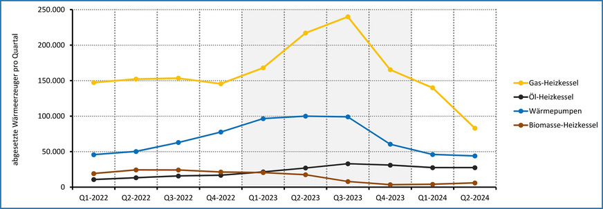 Nach dem Rekordjahr 2023 bewegt sich der Absatz von Wärmeerzeugern wieder zum langjährigen Durchschnittsniveau vor der Wachstumsphase ab 2020.