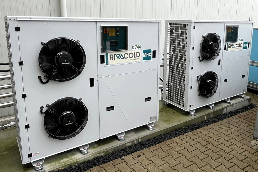 Um die aufgenommene Wärme zu entziehen, werden die Platten im ständigen Kreislauf wieder auf eine Temperatur von -28°C heruntergekühlt. Dafür ging im Lager ein neuer Froster mit drei Kühlräumen in Betrieb. Die angeschlossenen zwei Verflüssigungssätze der Serie MHX stammen von der Rivacold CI GmbH, Fellbach. Sie arbeiten mit dem klimafreundlichen und zukunftssicheren Kältemittel CO2 (R744; GWP-Wert 1) selbst bei Umgebungstemperaturen bis 35 °C sehr zuverlässig.