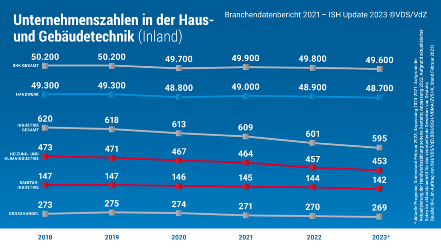 Die Branchendaten Haus- und Gebäudetechnik bilden die aktuellen Entwicklungen der Bereiche Sanitär, Heizung, Lüftung und Klima ab. Die Erhebung erfolgt im Auftrag der VdZ – Wirtschaftsvereinigung Gebäude und Energie e.V., VDS – Vereinigung Deutsche Sanitärwirtschaft e.V., BDH – Bundesverband der Deutschen Heizungsindustrie e.V., DG Haustechnik – Deutscher Großhandelsverband Haustechnik e.V., VDMA – Verband Deutscher Maschinen- und Anlagenbau, ZVSHK – Zentralverband Sanitär Heizung Klima sowie unter Mitarbeit der ISH. Die Branchendaten werden seit dem Jahr 2020 von der B+L Marktdaten GmbH erhoben. ■