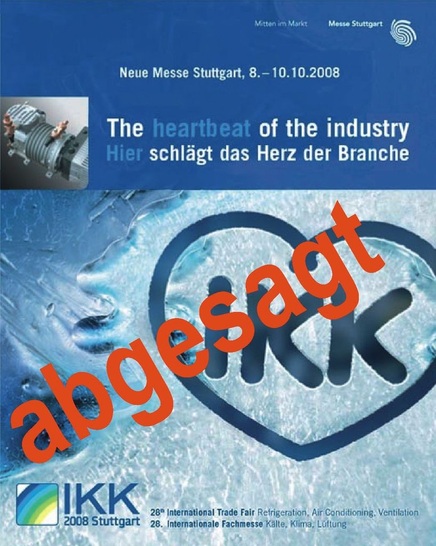 Die IKK 2008 – Internationale Fachmesse für Kälte, Klima, Lüftung – in Stuttgart findet nicht wie vorgesehen statt. Die Messe wäre hinter den Erwartungen zurückgeblieben, heißt es dazu in einer Pressemitteilung der Messe Stuttgart. Dass die IKK 2008 in Stuttgart (ursprünglich terminiert vom 8. bis 10. Oktober 2008) nicht stattfinden wird, sei das Ergebnis eines Gesprächs zwischen dem Verband Deutscher Kälte-Klima-Fachbetriebe VDKF und der Messe Stuttgart. VDKF und Messe Stuttgart seien zu der Erkenntnis gelangt, dass das vorliegende Ergebnis – gemeint ist der niedrige Anmeldestand – nicht dem Anspruch des Markennamens IKK und dem der Messe Stuttgart als Hightech-Standort gerecht werden kann. Deswegen „ziehe man sich aus dem Wettbewerb zurück“. Der Schritt kommt nicht ganz unerwartet. Schon im letzten Jahr war dieser Schritt abzusehen, als die Chillventa – Internationale Fachmesse für Kälte, Raumluft und Wärmepumpen – die führenden Hersteller der Branche für ihre Veranstaltung in Nürnberg vom 15. bis 17. Oktober 2008 gewonnen hatte.