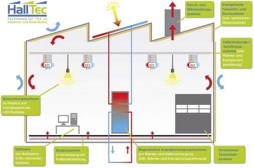 Durch gesetzliche Regelungen, insbesondere die Energieeinsparverordnung besteht auch für gewerbliche Gebäude bei Neubau und Sanierung die Verpflichtung, den Energieverbrauch senkende Dämmung, regenerative Energien und optimierte Gebäudetechnik zu berücksichtigen. In diesem Kontext ist die neue Fachmesse für TGA im Industrie- und Gewerbebau HallTec vom 8. bis 10. April 2014 in Karlsruhe die einzige Ausstellung, die ausschließlich den Nichtwohngebäudebereich in den Fokus stellt.