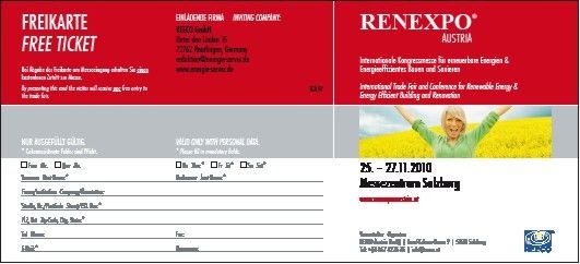 Die Renexpo Austria vom 25. bis 27. November 2010 ist am Donnerstag und Freitag von 9.00 bis 18.00 Uhr und Samstag von 9.00 bis 17.00 Uhr geöffnet. Der Organisator Reeco Austria erwartet 4000 Besucher und 500 Kongressteilnehmer. Jochen Vorländer