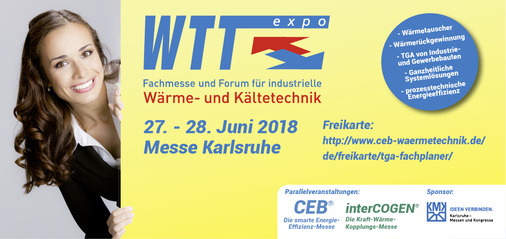 Auf der WTT-Expo dreht sich alles um die industrielle Wärme- und Kältetechnik und damit auch um prozesstechnische Energieeffizienz. Der Schwerpunkt liegt 2018 auf den Bereichen Wärmeübertrager für die Wärmerückgewinnung im Bereich Hallenheizung und -lüftung, der Nutzung von Prozessabwärme sowie entsprechenden Komponenten im Sinne der TGA von Industrie- und Gewerbebauten. Dazu werden ganzheitliche Systemlösungen und innovative Produkte zur Optimierung der Energieeffizienz präsentiert.