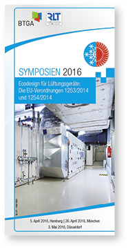 Aufgrund des starken Informationsbedarfs zu den neuen Bestimmungen der Ecodesign-Richtlinie für Lüftungsgeräte, führt der Fachverband Gebäude-Klima (FGK) in Kooperation mit dem Bundesindustrieverband Technische Gebäudeausrüstung (BTGA) und dem Herstellerverband RLT-Geräte am 26.04.2016 in München und am 03.05.2016 in Düsseldorf Symposien für TGA-Planer, Anlagenbauer und Produktverantwortliche durch. Sie informieren detailliert über die Inhalte der Verordnungen EU/1253/2014 und EU/1254/2014, die Anfang 2016 im Rahmen der ErP(Ökodesign)-Richtlinie in Kraft getreten sind. Insbesondere werden praktische Fragen aus deren Anwendung sowie Schnittstellen mit EnEV, EEWärmeG und dem Baurecht diskutiert. www.fgk.de