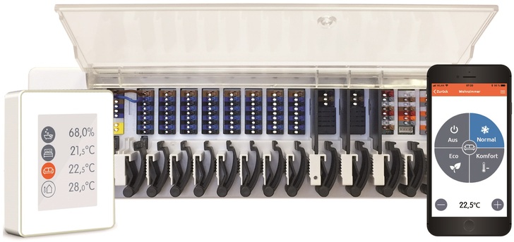 Oventrop, 9.1 A06: Die elektronischen Funk-Thermostate mote 200 und Funk-Stellantriebe mote 420 verfügen über eine Selbstlernfunktion zur Adaption an das Nutzerverhalten. Per Oventrop-App sind zusätzlich programmierbare Zeitprofile und die Fernbedienung per Smartphone über eine Bluetooth Verbindung möglich. www.oventrop.com