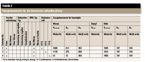 Ein Verweis auf DIN V 18599-3 mit den darin aufgeführten Anlagenlösungen und der Möglichkeit, den jährlichen bzw. monatlichen Energiebedarf als Funktion des Luftvolumenstromes und in Abhängigkeit verschiedenster Parameter [9] zu ermitteln, würde den Nutzwert der Richtlinie erhöhen (vgl. Tabelle 2). Hinsichtlich der Formelzeichen wäre es sinnvoll,