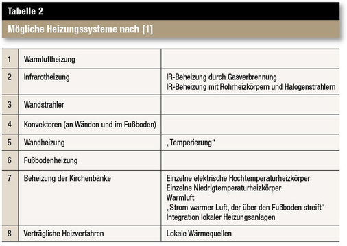 Beheizung von Kirchen nach [1]