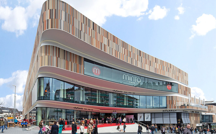 Seit der Eröffnung des Minto 1 zieht das neue Einkaufszentrum Besucher bis weit aus dem Gladbacher Umland an. Auf 42 000 m 2 Verkaufsfläche bieten 104 Geschäfte auf vier Ebenen ein reichhaltiges Sortiment. Doch nicht das pure Warenangebot macht das Center so attraktiv, im Minto wird Einkaufen zum Erlebnis. Ziel des Konzepts ist, dass sich die Kunden wohlfühlen und gerne ihre Freizeit im Einkaufszentrum verbringen („Erst die Arbeit, dann das Minto.“). Dafür sorgen zum einen ein vielfältiger Angebotsmix aus Geschäften, Gastronomie, Events und Services, zum anderen eine aufwendige Innenarchitektur mit fünf Themen-Fassaden – und eine optimale Belüftung. Der „Green Point“ beispielsweise besteht komplett aus echten Pflanzen und Grasflächen, verströmt einen frischen Duft und Geräusche aus der Natur, wie Windrauschen und Vogelgezwitscher, all das schafft eine entspannte Wohlfühlatmosphäre.